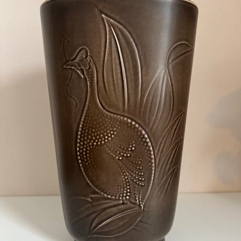Porcelæn, Vase, Aluminia, Oval mintgrøn Marselis vase i fajance med bladmotiv nr. 2639