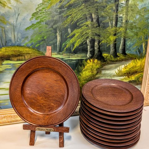 SKRIV PB FØRST ::::Tallerken, Teaktræ, Tallerkener i teaktræ 40 kr stykket