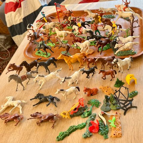 Legetøj, ANTIK HESTE - HONGKONG, 13 STK PLAST SJÆLDNE FRA 1950`ERNE