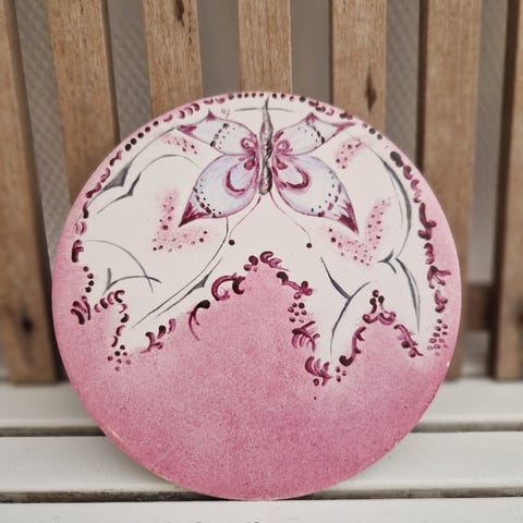 Platte, H&R Johnson, Flot enkelt platte med motiv af bær og en blomst. Lidt skår i venstre side. Ø: 15 cm.