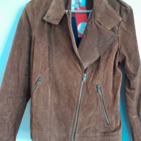 Ruskindsjakke, lille str. 40, ONLY, Varm rustrød, Ruskind, Ubrugt