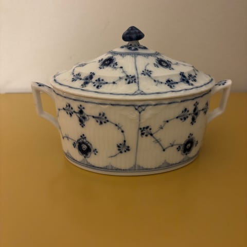 Porcelæn, Sukkerskål/Smørskål, Royal Copenhagen, Royal Copenhagen, Musselmalet riflet sukkerskål/smørskål.