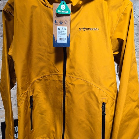 Skaljakke, str. 54, No Name, Vintage gul, Pvc, Næsten som ny, Old school fed retro model med for indvendig der evt kan lynes af, 2 lommer foran Knappes med 4 knapper, få brugs spor, virkelig et fund for kendere. Der står størrelse 54-56 L jakken. Tilkøb evt regnbukser, se anden annonce, god her til den kommende sæson