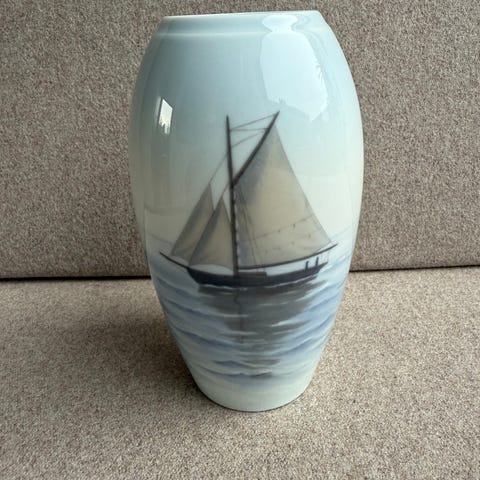 Vase Med Skib, Bing og Grøndahl, Fin lille vase med skib fra Bing og Grøndahl.