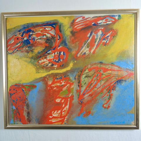 Gouache, Skøn og super fed, farverig komposition af PETER NYBORG (f. 1937).