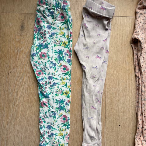 Leggings Name it str. 98 tynde bomuldsleggings, brugt, men pæn stand. De hvide følger bare med, de har nogle sorte streger bag på. Ann. nr. S1494