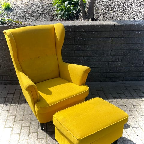 Lænestol, stof, SKALBORG, Lænestol og fodskammel SKALBORG mørkegråt.