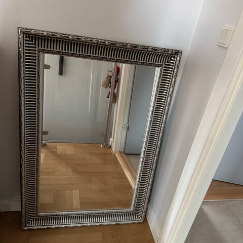Entrespejl, b: 70 h: 129, Rigtigt fint entrespejl med sølvramme.
