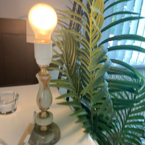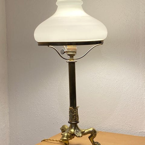 Med aldersrelateret patina og lampen trænger til at få en ny skærm. Prisen er sat derefter.