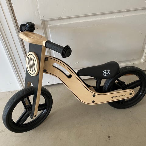 Løbecykel fra Trævarefabrikkernes Udsalg . Materiale: Birkefiner. Meget fin stand,,kun brugt få gange. Nypris ca. 1100 kr. Sælges for 500 kr