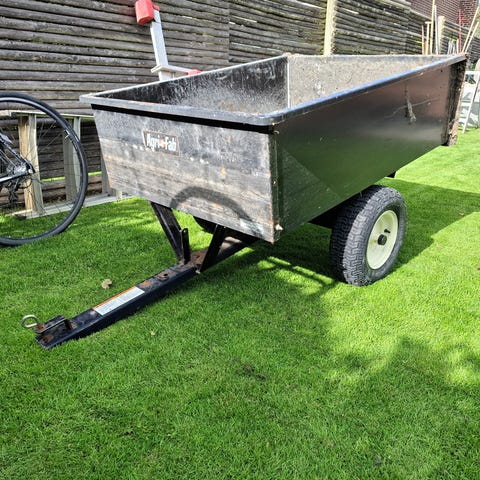 Trailer til havetraktor, 2 akslet trailer til havetraktor med kasse foran til værktøj eller diverse ting.