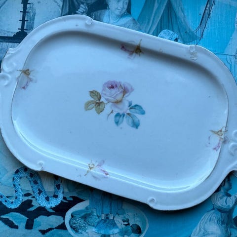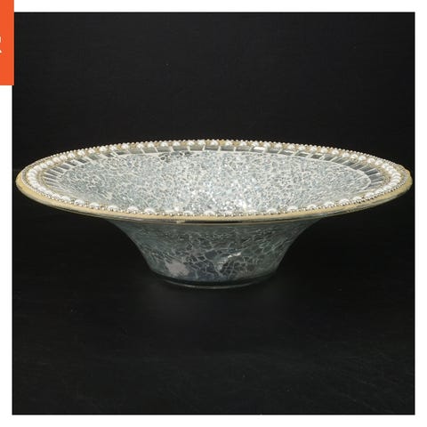FLOT KERAMIKFAD 27 CM I DIAM, FLOT BILLEDE MED ENGEL 14x14 CM & SØLVFLASKE, FLOT KERAMIKFAD MED SØLVKANT