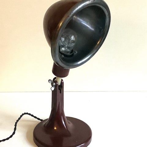 Anden bordlampe, Tysk design lampe Opbygget helse-lampe – lægelampe fra Hanau-Solux i sarte 50’er pasteller. Dynamo formet skærm. . Tysk design 1950’erne. Skærmdiameter
