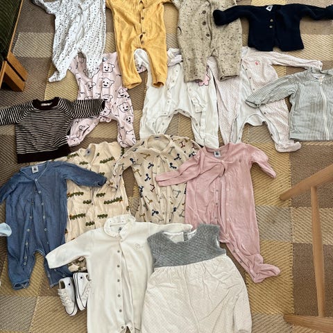Blandet tøj, Bluser, bukser, dragte, bodyer, Ralph Lauren, Jacadi, Benetton, Petit Bateau, str. 62, Virkelig lækker tøjpakke der passer i størrelsen fra 2-6 mdr. Alt sammen næsten nyt, men enkelte af delene kan have lidt brugstegn.