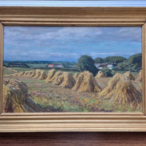 motiv fra Hov/Hou (jeg ved ikke, om det er fra byen i Nordjylland eller i Østjylland). Lysmål: 60,5 x 46,5 cm. Rammemål: 78 x 65 cm