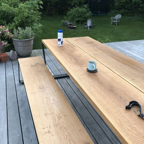 Dobbelt olieret med Junckers klar havemøbelolie.