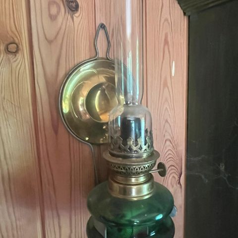 Petroleumslampe, Messing, 50 år gl., Flot G. V. Harnich bord og loftslampe, nummeret. Højde 40cm. Kuplen er fra Holmegaard. Diameter på glasset er 30cm.