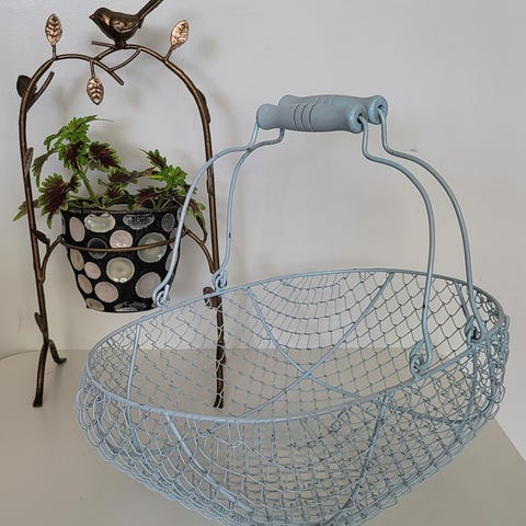 Tråd stativ, Super charmerende kurv til at sætte urtepotte i i pokal fodboldtråd-råhvid med rustik rust.
