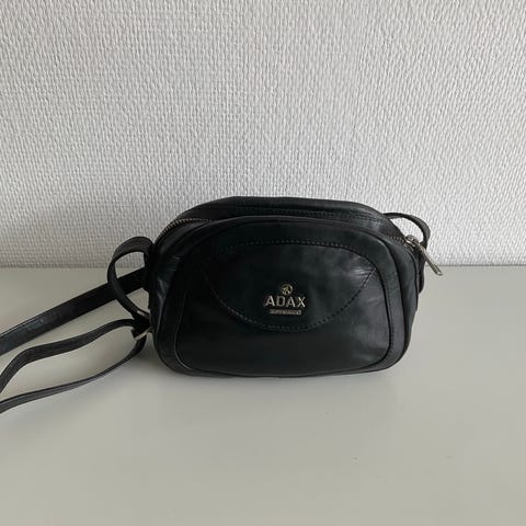 Skuldertaske, Adax, Lille skuldertaske i lækkert sort skind. Indvendig lomme med lynlås.