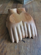 Hænder der holder og gir. Træ hånd skål, Hånd design. Østerlandsk design, En skål formet som hænder. Et slags alter kar. Fin deko til husalter el lign. God stand