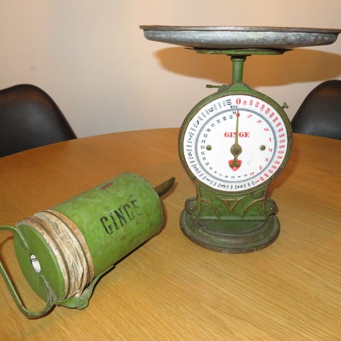 Ginge Vægt, Jern, Antik Ginge køkkenvægt med intakt vægt og skive.