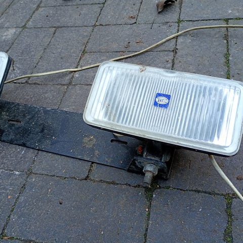 Andet biltilbehør, tågelygter inklusiv ledning til montering. ældre set.