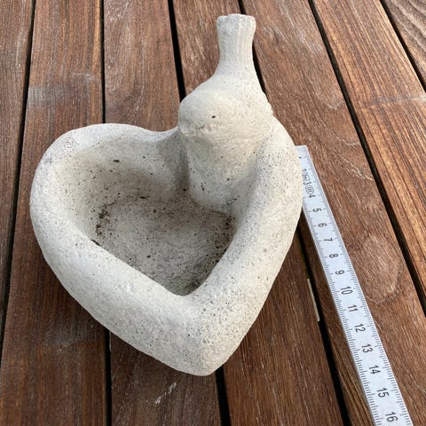 Der er et mindre afslag i kanten nederst i den ene side (se det sidste billede). Ellers er den fin.