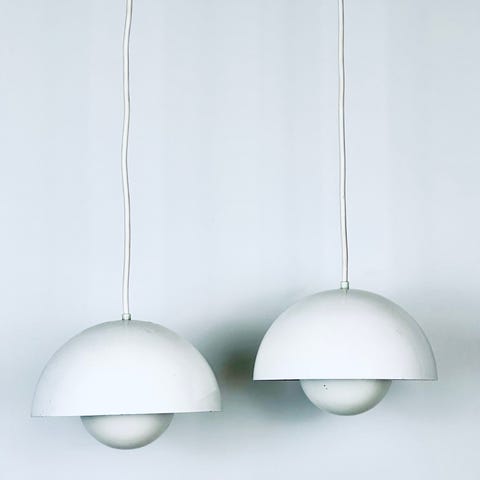 Verner Panton, Verner Panton - Flowerpot, bedlampe, 2 originale bedlamper - designet af Verner Panton og produceret af Louis Poulsen.