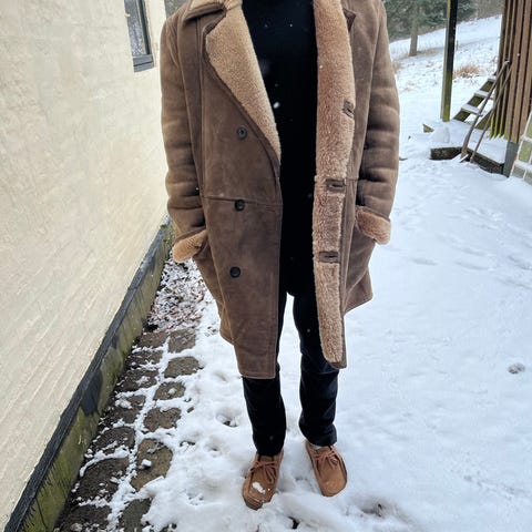 Rulamsfrakke, str. M, GMG international, Brun, Læder, God men brugt, -Super god retro varm frakke til vinter brug i 70'ere/80'ere stil. Den er stor i størrelsen, så det er en stor M størrelse.