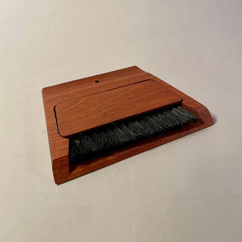 Krummebørste og bakke, ?, Messing/teak? Børste med bakke