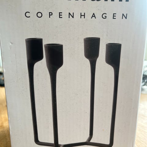 Andet, lysestage, Normann Copenhagen, Heima, 4- armet lysestage, sort, h:20,4 x L: 13,8 x D 13,2 cm, flot minimalistisk, skulpturel, klassisk, moderne udtryk. NY, i æske. Sælges for 149 kr. Sender gerne. Porto oveni