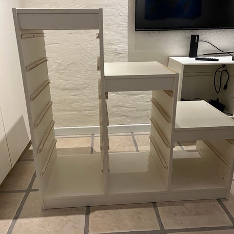 Reol, IKEA Tigerfink, Lille turkis reol/opbevaringsløsning til legetøj og bamser. Modellen hedder Tigerfink. I pæn stand