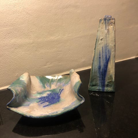 “Lise keramik” sæt med lampe, vase og fad, Lise keramik