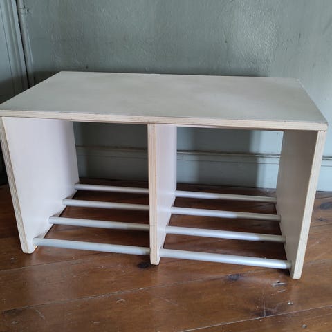 Mål. H140/B50/D45 cm Stor hylde. 45/45 cm, mellem hylde. 45/31 cm, lille hylde 45/19 cm