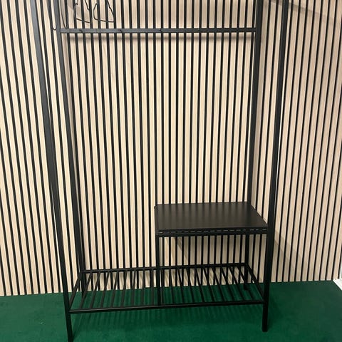 Håndklædeholder, LA Vida, Håndklædeholder og samtidig som hylde. De 3 Glashylder kan tages af og bruges som et fad til pynt. Stativet kan klappes sammen. Kan også bruges som en reol på værelset.