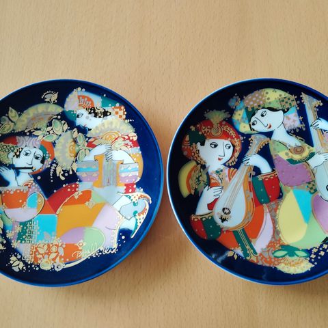 Platter, Bjørn Wiinblad, 2 Bjørn Wiinblad platter. 15 cm ca. ene motiv:Orientaliche Nachtmusik, Overture, Motiv 1 den anden: Mandolinespielller Motiv 2. 149 Kr./stk