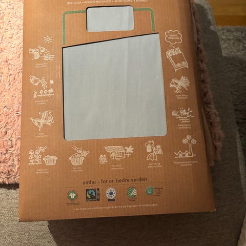 Sengetøj, omhu, 2 stk. sengesæt i farverne sort, hvid, beige og grøn. Der er 2 dynebetræk og 4 pudebetræk (2 multifarvede og 2 ensfarvede). Lukkes med lynlås. Helt nye, har været vasket 1 gang. 100% økologisk bomuld. Kan vaskes ved 60 grader.