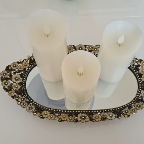 Firkantet spejl plade, Firkantet spejl plade med sølv farvet kant til måske fyrfadslys eller andet