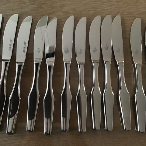 Rustfrit stål, Knive , vintage, 9 smukke knive med perlemor farvet skaft.