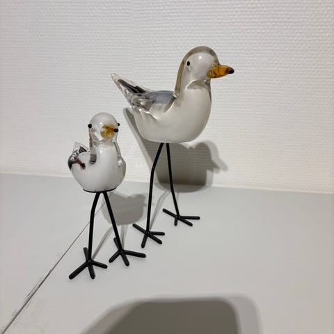 Glasmåger på træopsats, 2 søde glasmåger på naturtræ opsatser.