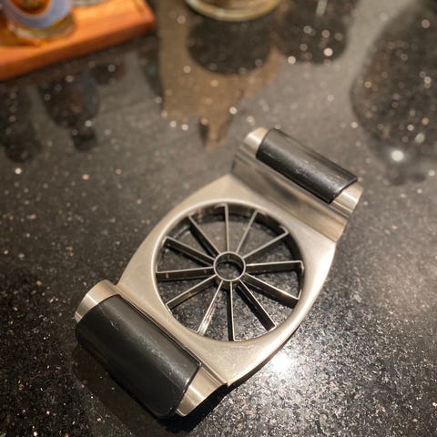Smart, praktisk og let anvendelig melon-deler. Fungerer som en æbledeler. Melonen bliver skåret i 12 lige store stykker og midten med kerner bliver skåret fra. Til alle typer meloner.