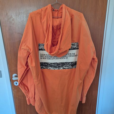 Anorak, str. 40, Calvin Klein, Orange, Næsten som ny, Sælger min helt igennem fantastik Calvin Klein Jeans anorak. Den er ret sej i orange men får den ikke brugt. Der er en lille revne (går ikke igennem jakken) foran som det ses på billedet. Den er vandafvisende.