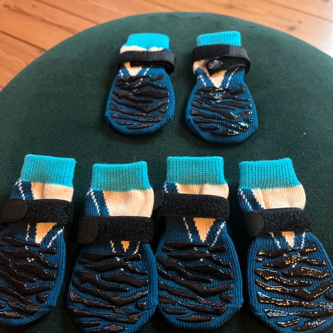 Hundebeklædning, Hunde strømper, nye Små str, til en lille hund. Et par enkel der er til en mindre hund. Pris kr. 25 på de små, kr. 35 for de grå,