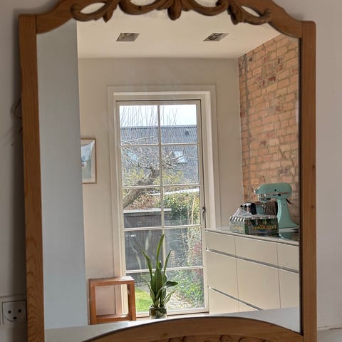 Antikt spejl , velholdt ift alderen. Mahogni.