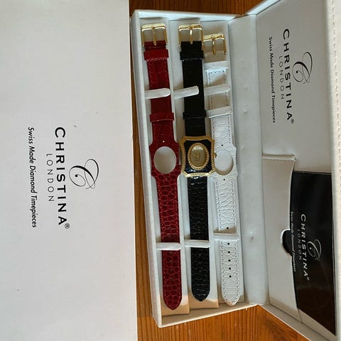 Dameur, Christina Design London, Brugt men flot og velholdt Collect Ur med 12 Fg Charms / med bl.s. Ametyst, Safir og Topas.