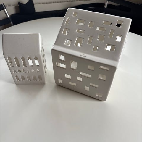6 huse med sne på tagene, Julehuse med ophæng.