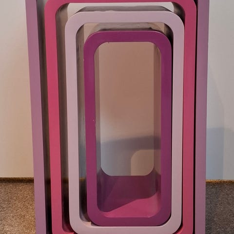Tre fine bogreoler i forskellige størrelser (43x43, 38x38 og 33x33) med mulighed for ophæng. Perfekte til ethvert pigeværelse :o) Har enkelte brugsmærker, men fungerer 100%.