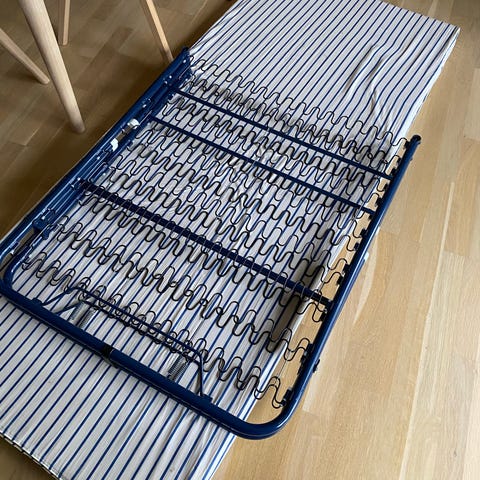 Gæsteseng, Retro sammenklappelig gæsteseng af ældre dato.
