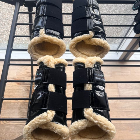 Gamacher, Lammeskind, Sorte gamacher med lammeskind fra HorseGuard, str X-large, med lidt slid