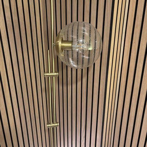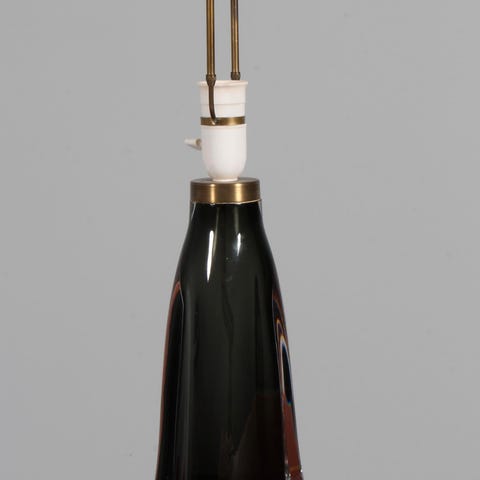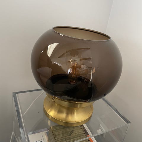 Anden arkitekt, Glas og messing, gulvlampe, Super smuk Carl Fagerlund gulvlampe med fod af ravfarvet glas, og konisk messing stang. Fine detaljer.